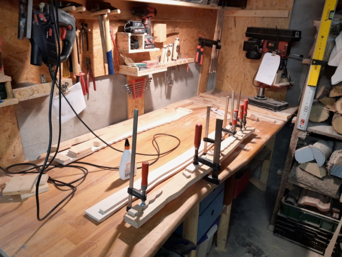 Alle Produkte von auratools entstehen in Handarbeit in einer kleinen Garagenwerkstatt. Es gibt keine CNC-Maschinen - jedes Teil wird mit einfachem Werkzeug in vielen kleinen Schritten hergestellt. Auf dem Foto sieht man übrigens die Schablone, mit der der Rücken der Aurakämme gefräst wird.