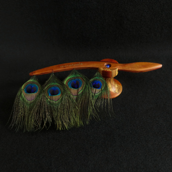Die kleinen Aurakämme haben eine Gesamtlänge von etwa 24 cm. Die Federn sind sehr unterschiedlich: Gänsefedern zum Beispiel sind bis zu 6 cm lang, Pfauenfedern können auch 14cm lang sein.