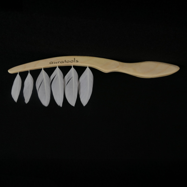 Die kleinen Aurakämme mit Gänsefedern sind in unserer Erfahrung besonders hilfreich bei akuten Belastungen der Aura mit Gefühlen anderer Menschen. Sie werden vor allem im Gesichtsbereich (zur Reinigung der Chakren) verwendet.